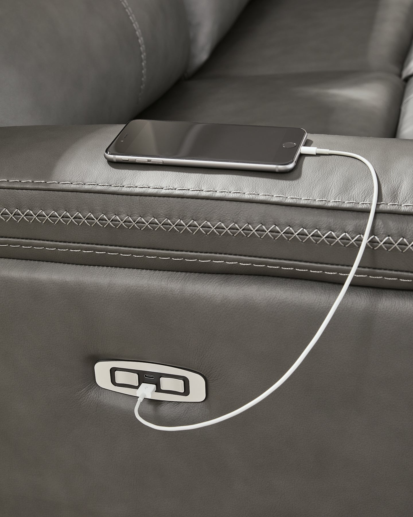 Are you ready to experience next-level relaxation? This power reclining sectional combines supple leather and faux leather upholstery with smart features that make unwinding effortless. With just one touch, you can adjust your position while the power headrest keeps you perfectly aligned for reading or binge-watching your favorite shows. The Zero³ reclining requires minimal space between wall and chair back while delivering fully supported, fully reclined comfort at the touch of a button. Thoughtfully designed with sculptural padded arms and built-in USB charging, this spacious piece will be your new favorite spot to recharge—both yourself and your devices.