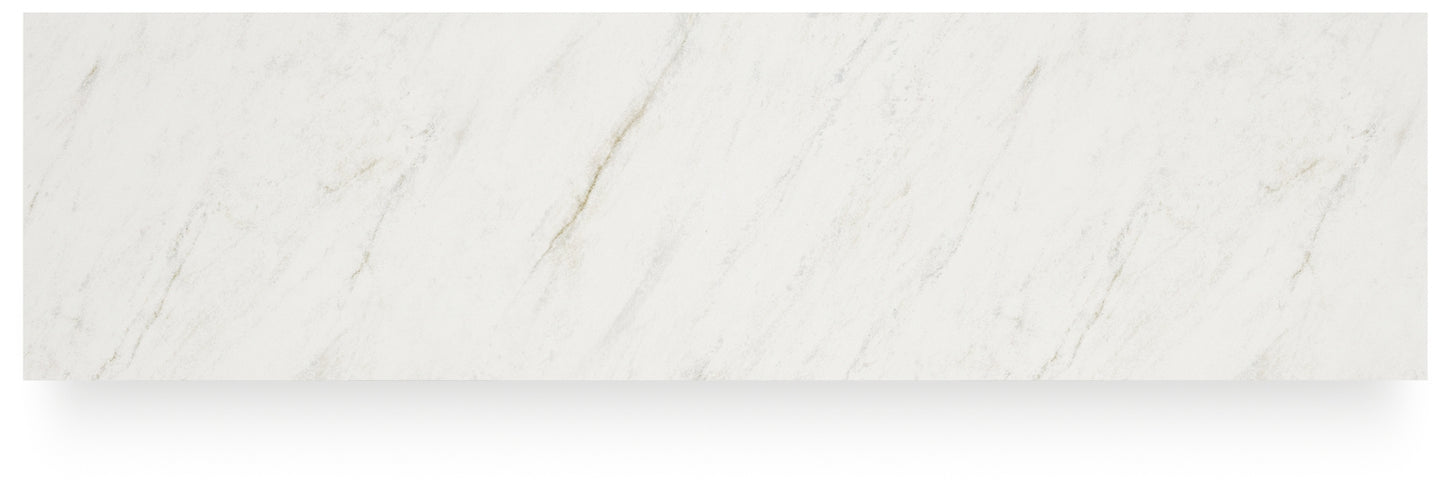 | Details | Made with engineered wood (MDF/particleboard/plywood) and decorative laminate for the right balance of affordability and durability, Matte black finish with subtle replicated wood grain, Replicated white marble top, Decorative laminate replicates natural or man-made material surfaces with consistent color, pattern and texture, Handles with light bronze-tone finish, Open shelf, 2 smooth-gliding drawers, Drawer interiors are lined with a faux linen laminate for a clean, finished look, Ambient lighting under the top, Power cord included; UL Listed, Minor assembly required | |
