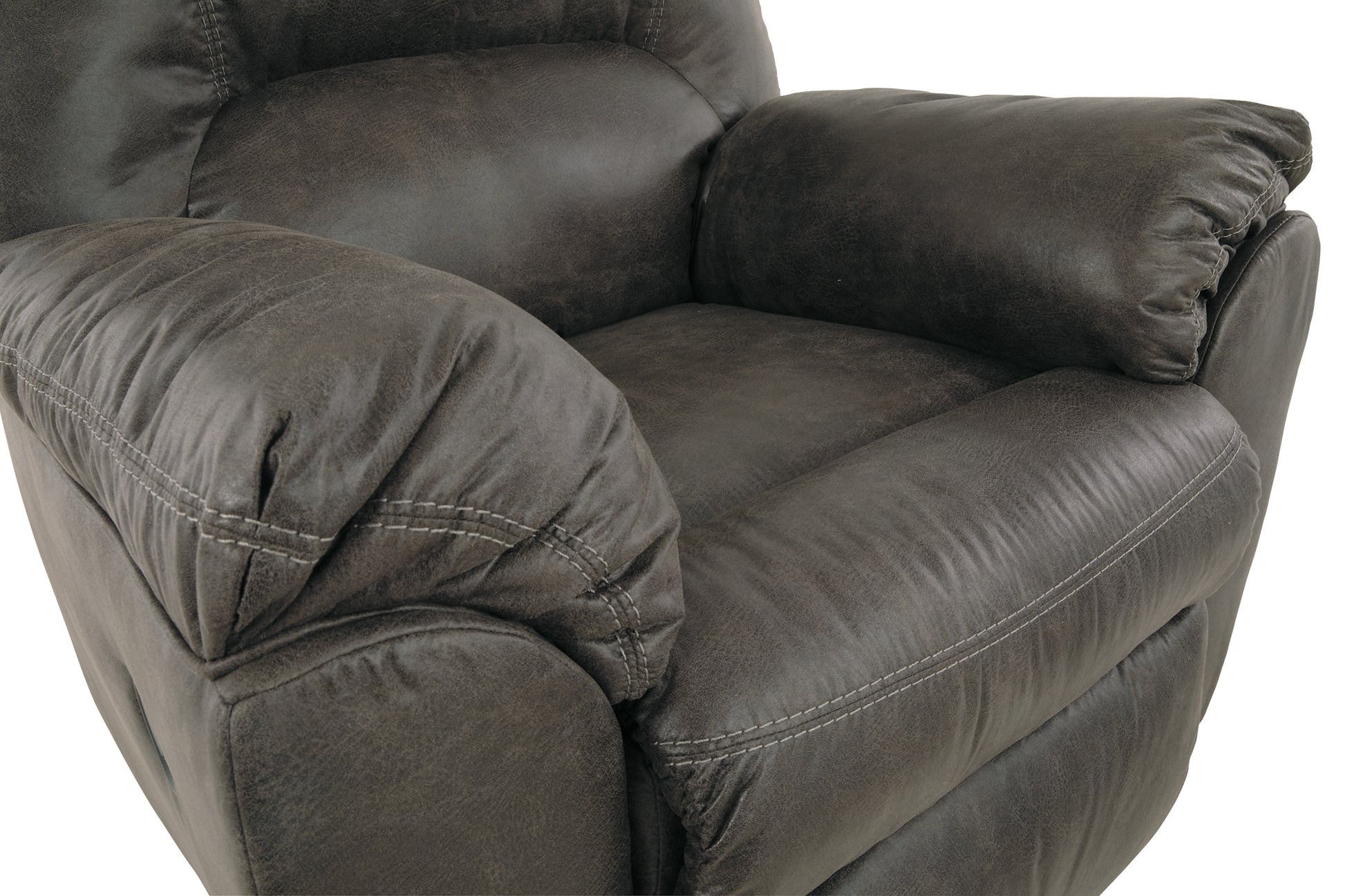 With plush cushions and angled pillow top arms, this rocker recliner takes comfort to a whole new level. Faux vintage leather requires minimal care, making this piece ideal in homes with children and pets. The seat reclines with the pull of a tab, putting total relaxation at your fingertips.
