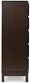 A rich, metropolitan finish. Unbeatable function. With this chest of drawers, it’s a breeze to create a casual contemporary hideaway full of style and convenience. It combines thoughtful craftsmanship and handy storage, with smooth-gliding drawers to help keep clothes and linens organized. Metal bar pulls complete the look with added flair.